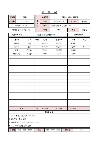엑셀로 만들었으니 마음껏 퍼가시고 추후에 또 다른 견적서 양식 만들어서 올리겠습니다.